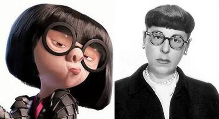 9. Edna Mode esteticamente assomiglia molto all’attrice Linda Hunt ma non è lei la vera ispirazione, ma la costumista otto volte premio Oscar Edith Head e invece la bassa statura e la personalità dall’attrice Bette Midler.