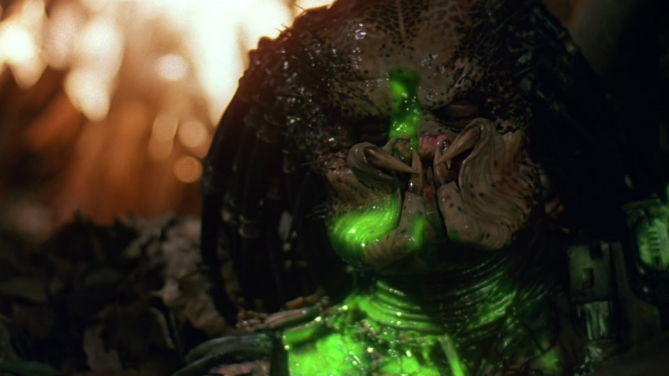 9. Per ottenere la soggettiva dell’alieno furono impiegate due cineprese che riprendevano contemporaneamente dallo stesso angolo: una camera ad infrarossi ed una comune a colori. In fase di montaggio le due riprese vennero sovrapposte ed elaborate in modo da poter distinguere i personaggi dall’ambiente circostante, in quanto una totale ripresa ad infrarossi sarebbe stata disorientante per lo spettatore.
