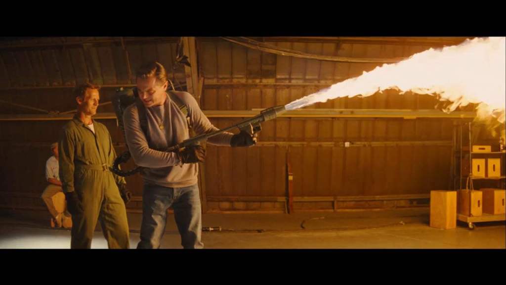 6. DiCaprio si lamentò veramente per il troppo calore del lanciafiamme… Tarantino decise di inserire la gag anche nel film.